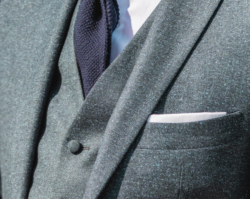 Sans être conventionnel le vert fait désormais partie du dressing du Marié. Avec Natura on vous propose un vert moucheté qui à des reflets bleus. La teinte douce et foncée, associée à la troisième pièce permet de rester élégant sans être classique !