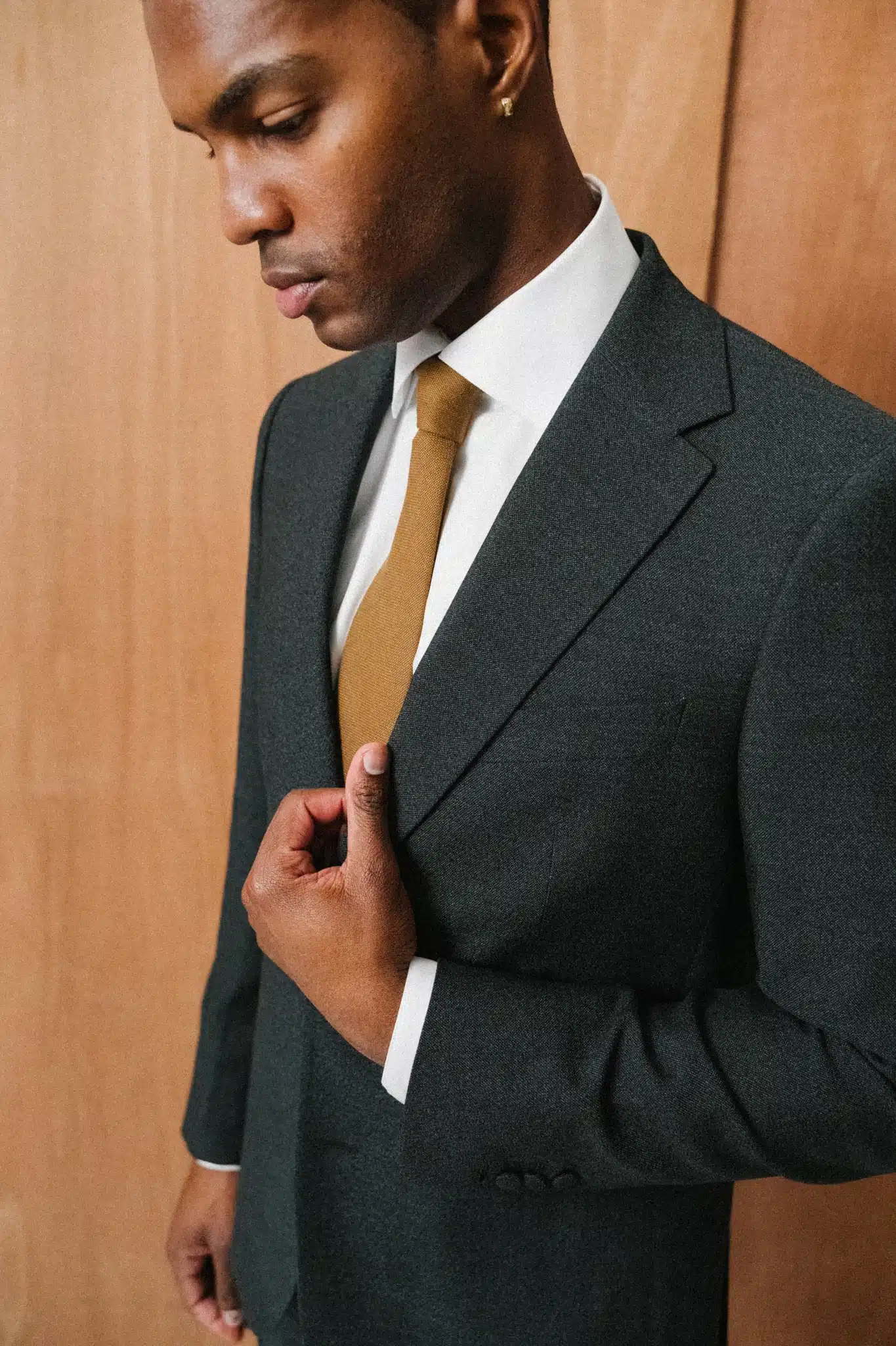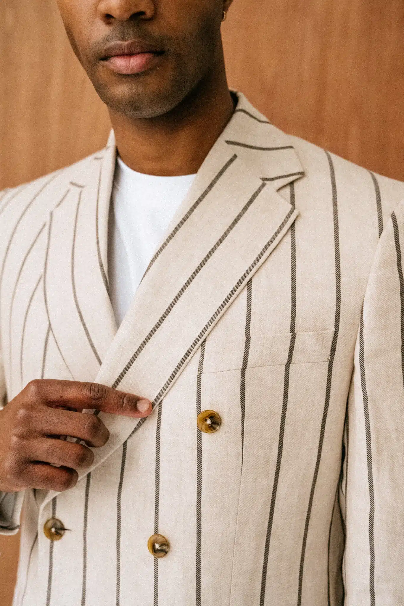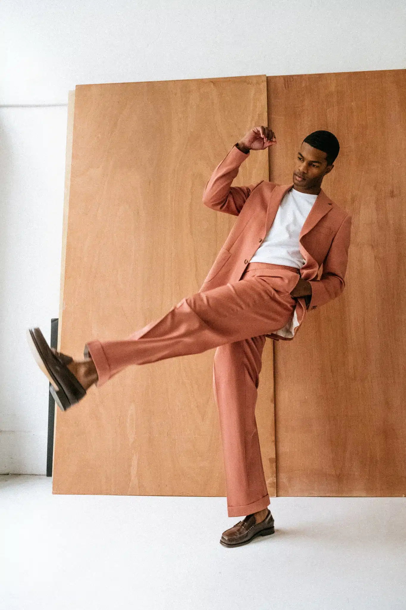 On libère les corps, les coupes se font plus affirmées : les épaules sont dessinées, et les revers s’élargissent spectaculairement, souvent en pointe, recouverts de satin ou de soie. Le pantalon, taille haute, s’allonge, s’élargie renforçant une silhouette élancée et théâtrale. Chaque costume est fait sur mesure. Nous adapterons les mesures et la coupe à votre morphologie et vos choix