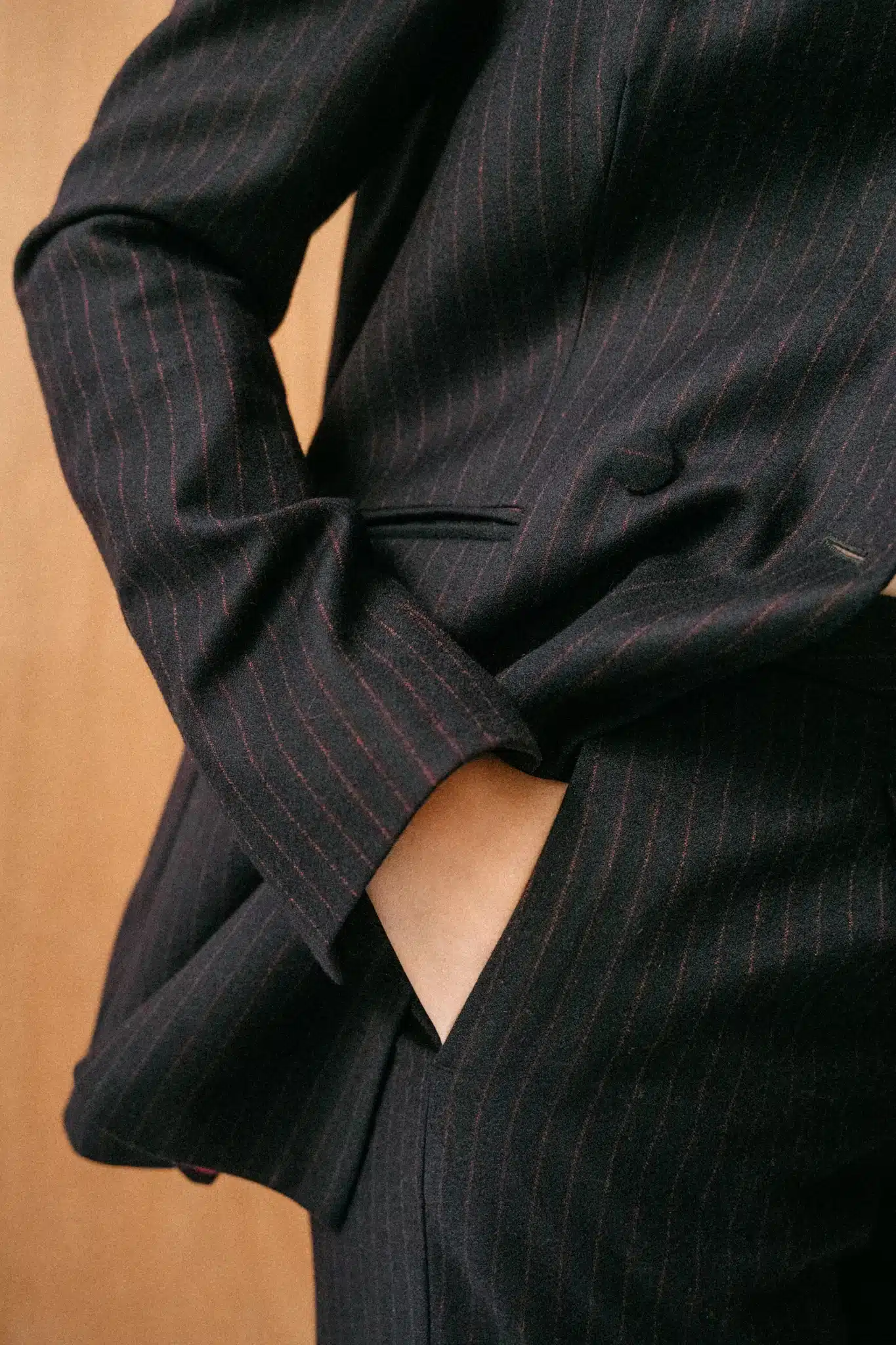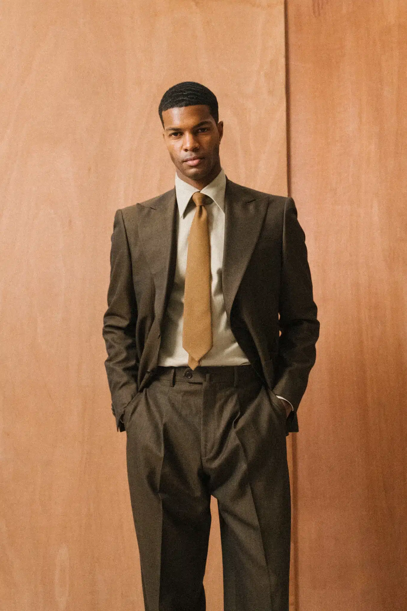 Revers affirmés, boutonnages marqués, jeux de matières, chemises à col généreux, finitions précises, accessoires revisités. Chaque détail fait écho aux codes des années 70, tout en s’inscrivant dans une lecture moderne et épurée du tailoring