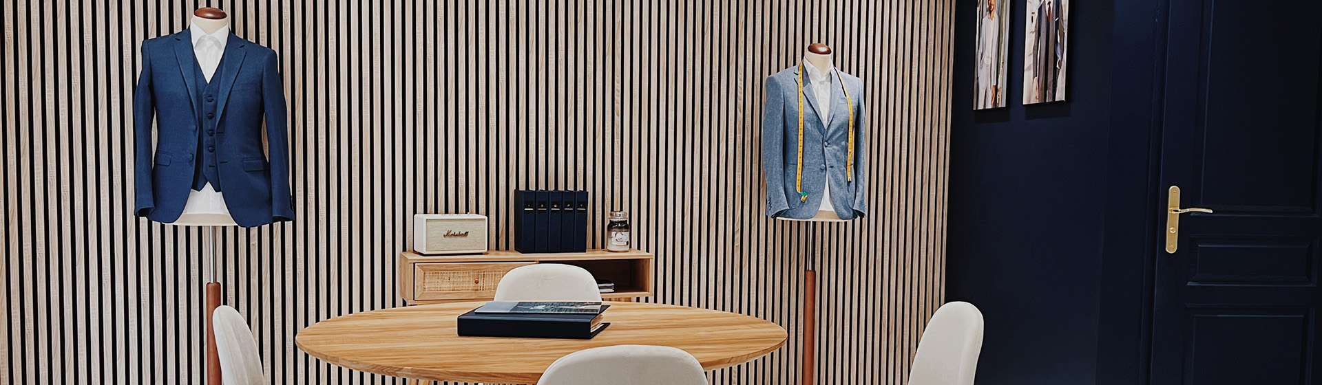 Bienvenue dans le showroom Faubourg Saint Sulpice de Bordeaux, un espace dédié au savoir-faire tailleur et à la création de costumes sur mesure d’exception.
