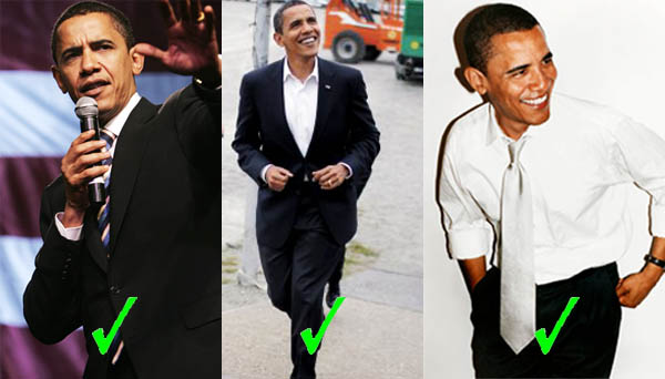 Qui dit grand Président, dit grand classique. Barack Obama en est l’emblème idéal. Il porte des costumes parfaitement adaptés à sa morphologie, des tons sombres mais justement choisis, une attitude décontractée et sereine.