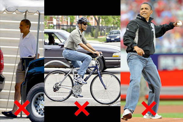 En dehors des caméras, son style n’est pas toujours sous contrôle. On en saisit toute l’importance d’un conseiller en image. Autant dire que le jean dépassé depuis 10 ans avec les runnings blanches sont loin d’être du meilleur effet ! Même en été, les sandales de piscine en plastique sont à proscrire. Même si l’on comprend que le statut de Président ne doit pas être facile tous les jours, ce n’est pas pour autant qu’il faut abandonner toute décence vestimentaire.