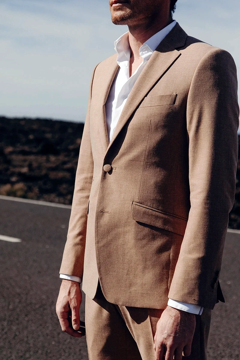 C’est un costume frais, léger, idéal pour toutes les saisons. Un costume de mariage sur mesure dans l’air du temps.