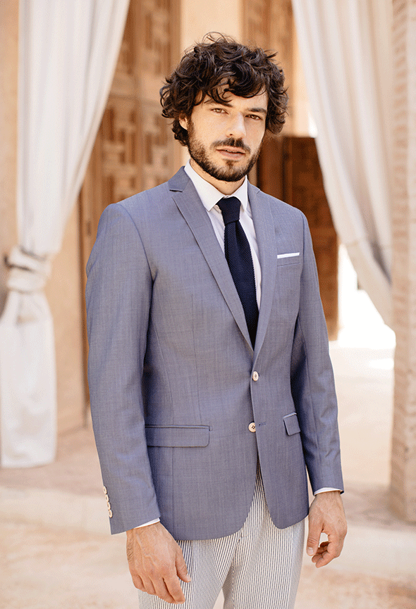 Astre, c’est un costume sur mesure dépareillé. L’alliance de la laine et du coton Seersucker. Ces deux matières favorisent la perte de chaleur et la circulation de l’air. Idéales pour les soirées chics de l’été.