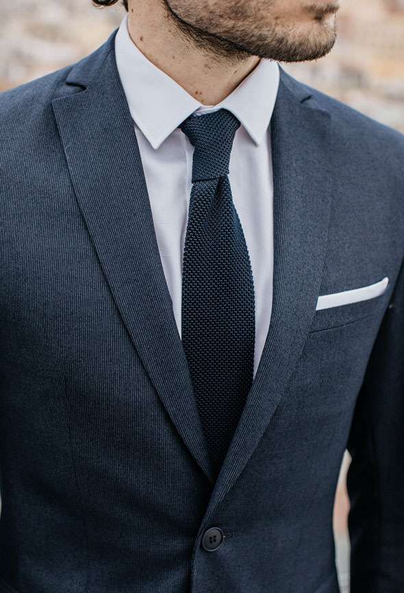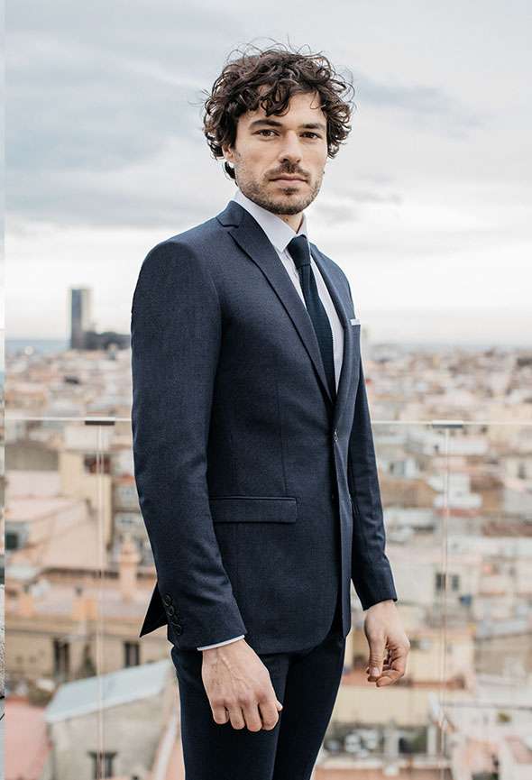 Eddie, un costume sur mesure confectionné à partir d’une toile 100 % Laine bleu marine à motifs mini-rayures. Discrets, ses motifs affineront votre morphologie pour une silhouette ajustée. Idéal pour le quotidien, il s’accompagne facilement d’une cravate bleu foncé et d’une paire de souliers noirs ou marron foncé.