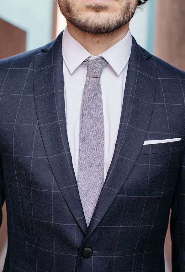 Sam, un costume sur mesure confectionné à partir d’une toile 100 % Laine bleu marine à motifs carreaux fenêtres. Il remplace à merveille votre basic bleu marine. Ses motifs donneront du volume à votre silhouette. Idéal pour les morphologies affinées, il apporte une légère touche d’originalité à votre tenue.