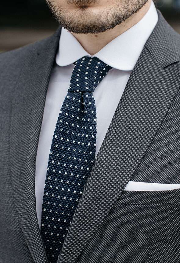 Sydney, un costume sur mesure confectionné à partir d’une toile 100 % Laine gris foncé à motif caviar. Un incontournable cette saison, c’est une pièce sobre et élégante. Ce costume est votre allié au quotidien. Porté d’une cravate bleue et accompagné d’une paire de souliers noires ou marrons foncé, vous vous assuré une tenue sans fausses notes.
