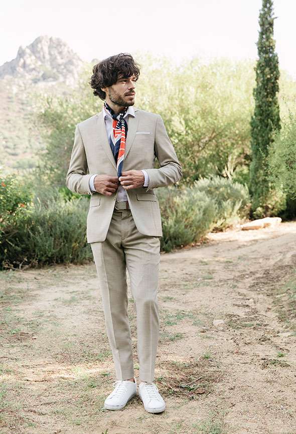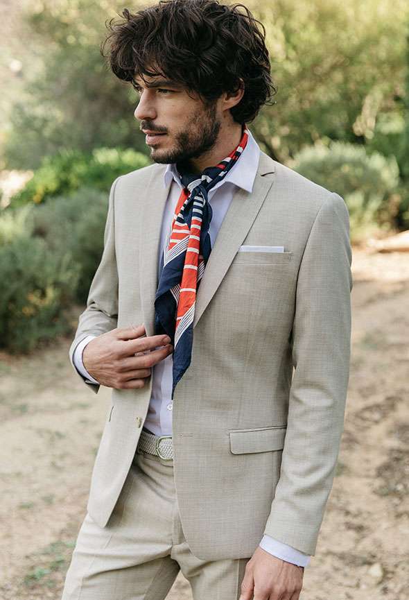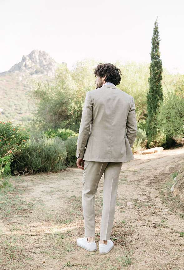La tendance cette année met le beige à l’honneur. Pour l’occasion nous avons créé Valentine, un costume sur mesure en Natté de Laine beige, un rappel à la texture du sable, inspiré des plages corses.