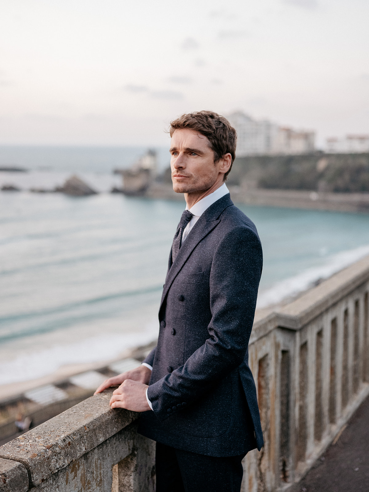Ozeanoa, c’est la grande sœur d’Olatu. Même veste exceptionnelle, son tombé impeccable a été pensé dans une version plus foncée, plus sobre et plus formel mais dont la texture mouchetée la rend malgré tout totalement unique.