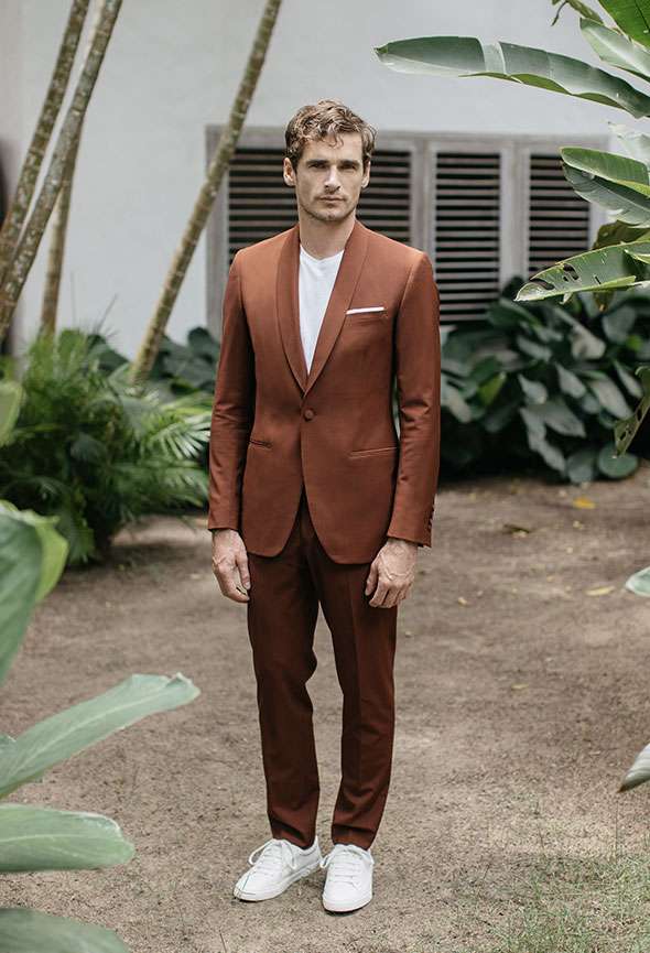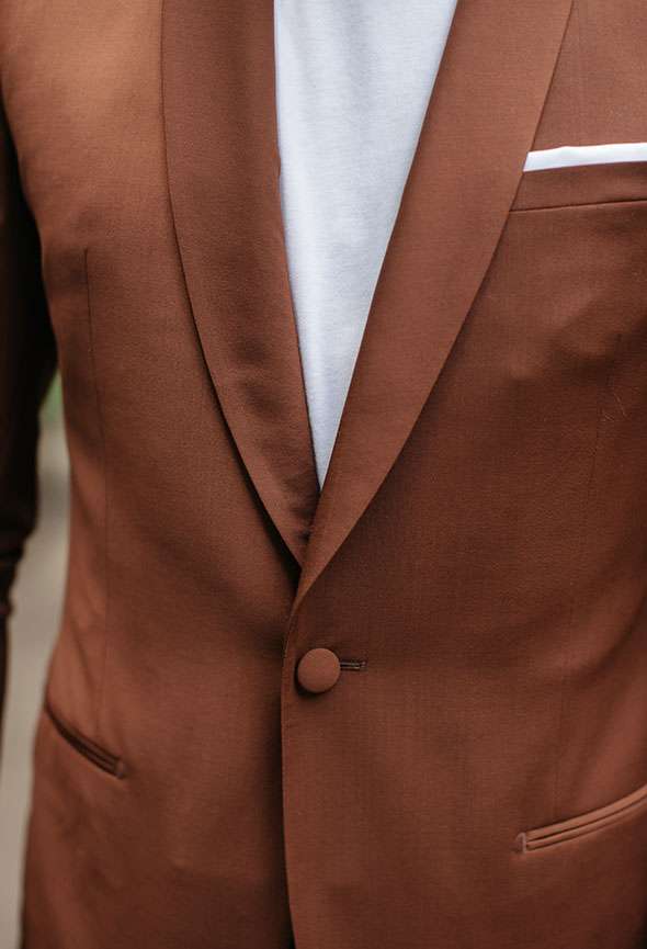Charlotte, c’est un choix équilibré et original. Ni brun, ni rouge, ni Marsala. Il a fallu plus de 5 ans de test colorimétrique pour trouver la nuance parfaite que nous recherchions. Un smoking de mariage singulier et audacieux.