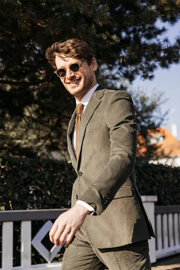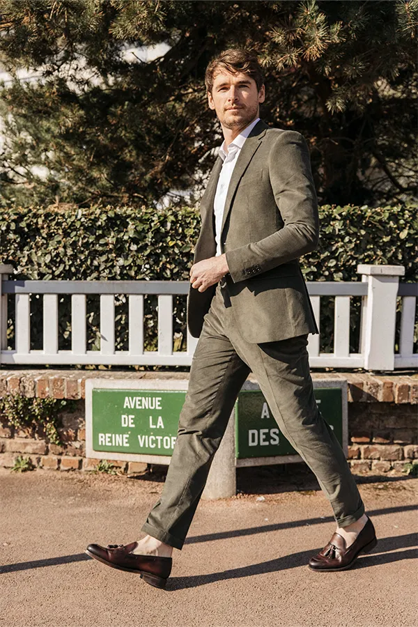 Notre costume authentique, créé à partir d’une étoffe 100% coton en velours côtelé. Un aspect velouté qui se dessine grâce à son tissage et un tombé impeccable. Le cotelage lui donne tout son charme désuet et à la fois tendance