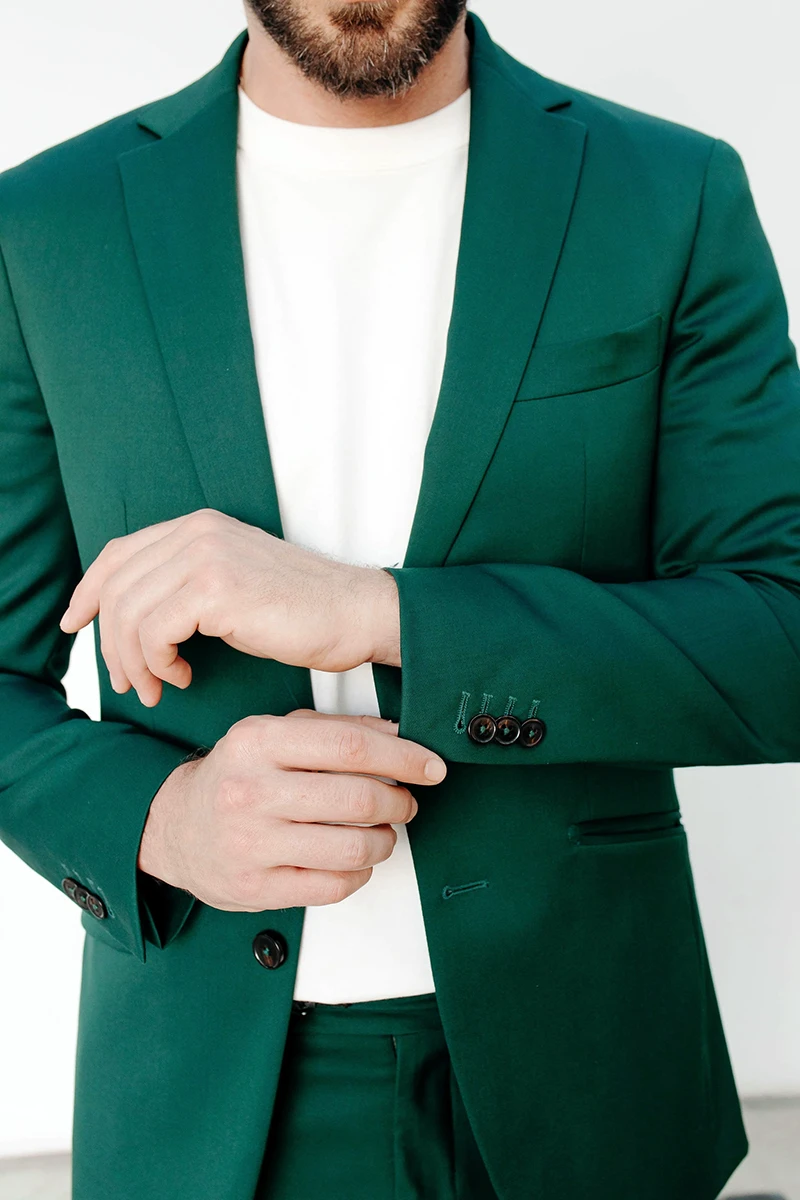 Ce costume vert est super polyvalent, il est l’allié idéal pour celui qui ose.